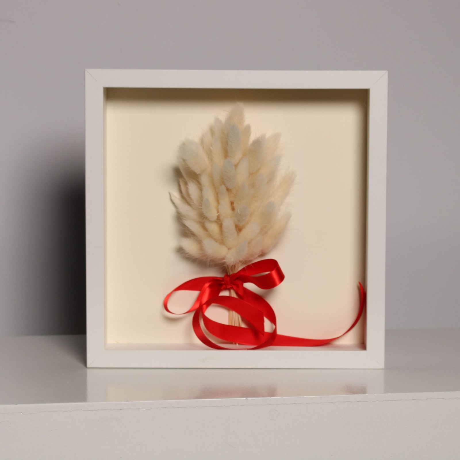 Baltų smilgų puokštė, sukurta rankomis.