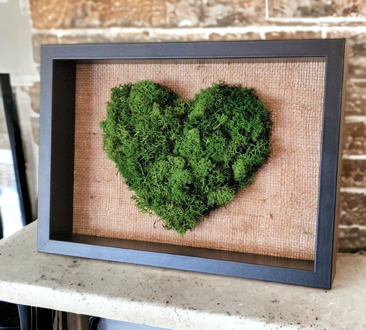 Samanų širdis pagaminta rankomis iš stabilizuotų samanų.