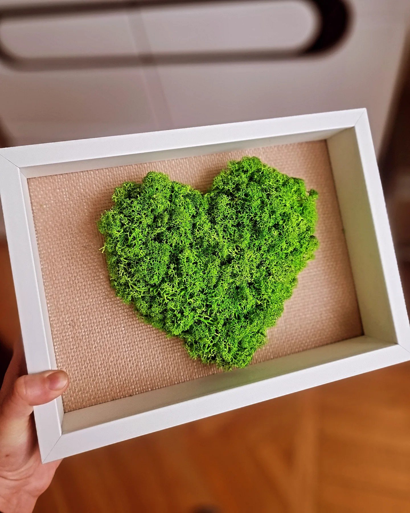Samanų širdis pagaminta rankomis iš stabilizuotų samanų.
